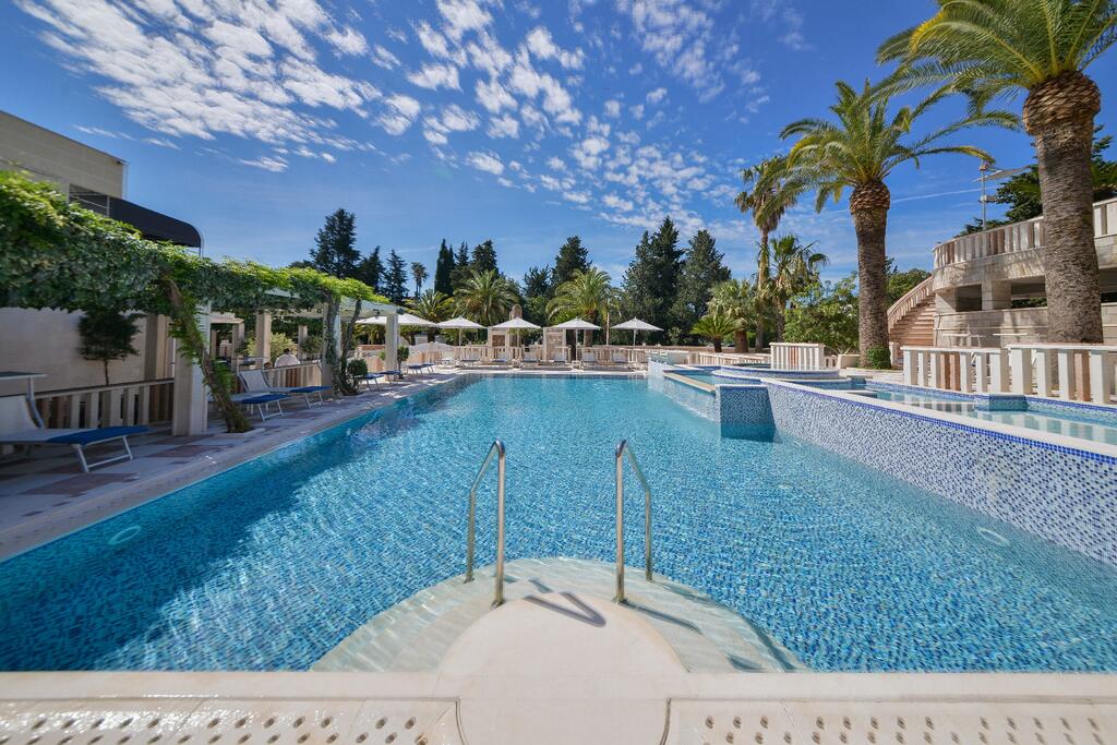 Ležaljke , suncobrane na privatnoj hotelskoj plaži I otvorenim bazenima